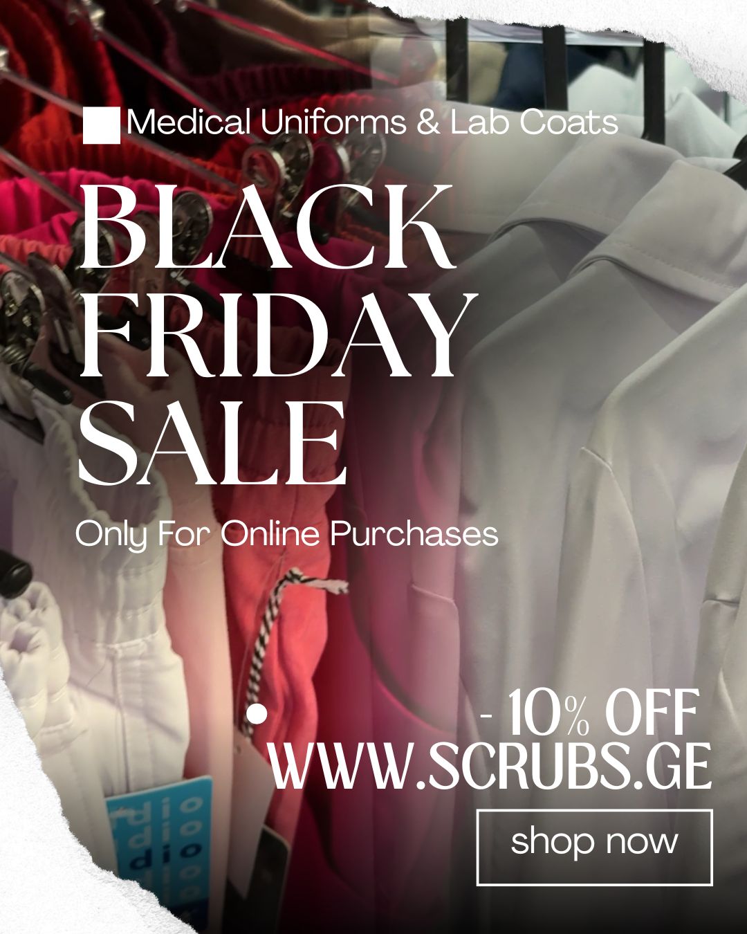 ონლაინ შეკვეთების შემთხვევაში, მიიღეთ 10%-იანი ფასდაკლება კალათაში ფორმებზე და ხალათებზე.
