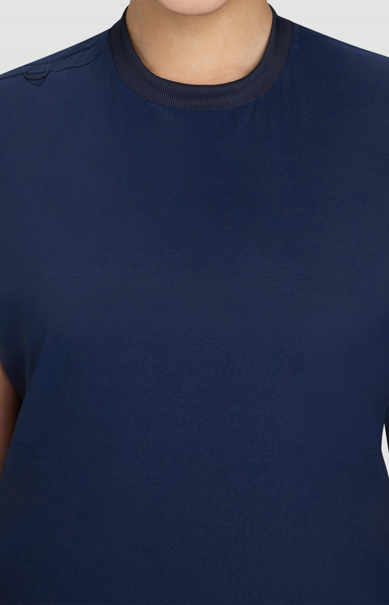 The Kenley is anything but your average women's scrub top. Lightweight and breathable, it brings together comfort, style and function in one eye-catching top. Its rib-knit neckband adds a touch of style while keeping the fit easy and relaxed, and the dolman cap sleeves give it a flattering shape without feeling restrictive. You'll love the subtle design details, such as the ID badge loop and the pleated back that gives you room to move. Two front inseam pockets blend into the design while giving you the storage you need. Conemporary fit.