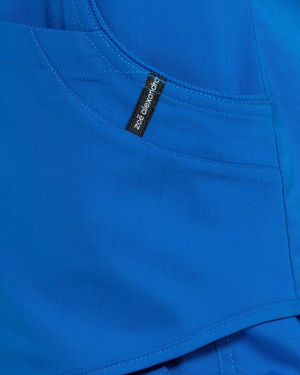 ქსოვილზე დატანილი ეტიკეტი "Zoë Alexandra" მარცხენა ჯიბის შესასვლელთან