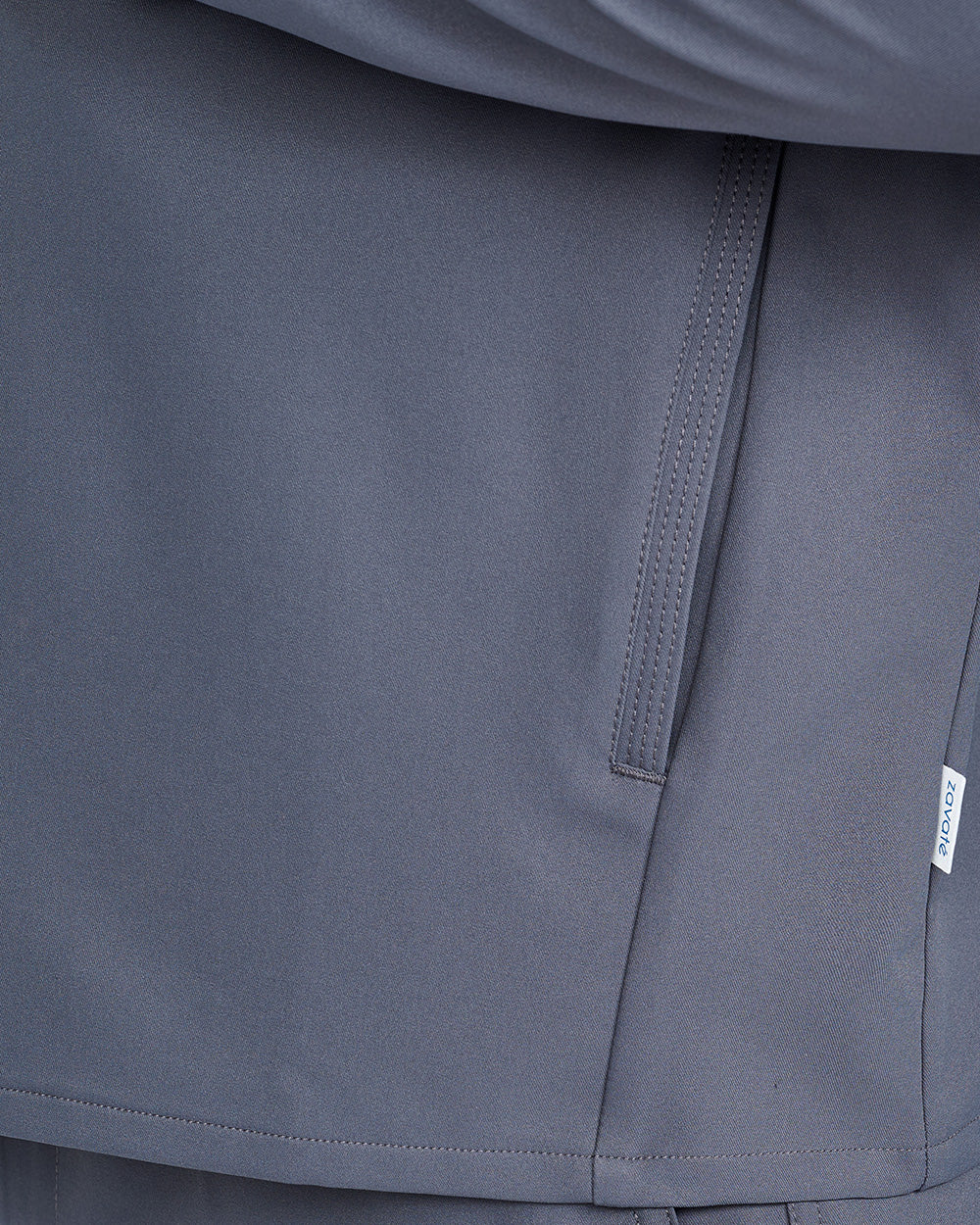 Front shoulder yokes with elastic bungee loop on wearer’s right