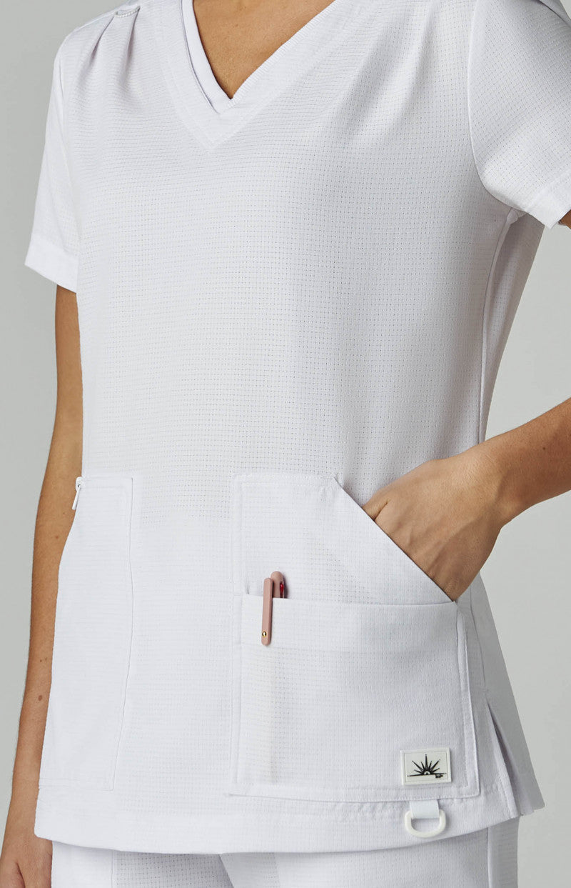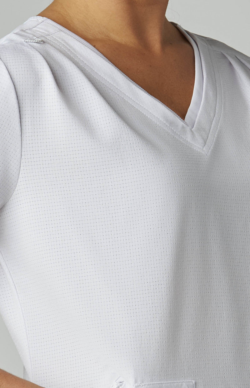დახვეწილი, მოდური სამედიცინო ზედა, რომელიც დამზადებულია ჩვენი ულტრა გამძლე, მაგრამ აბრეშუმისებრ რბილი ExoFlex™ ripstop ელასტიკური ქსოვილისგან. თანამედროვე ჭრილი.