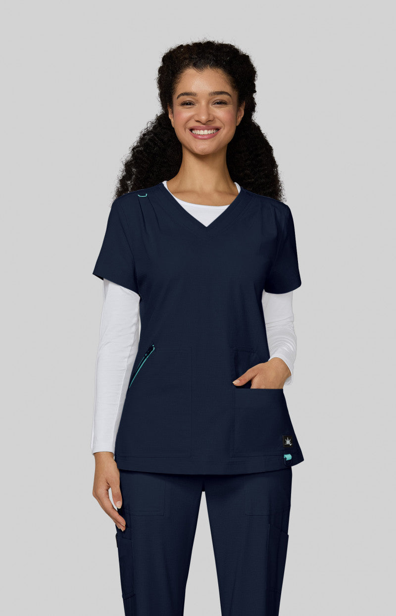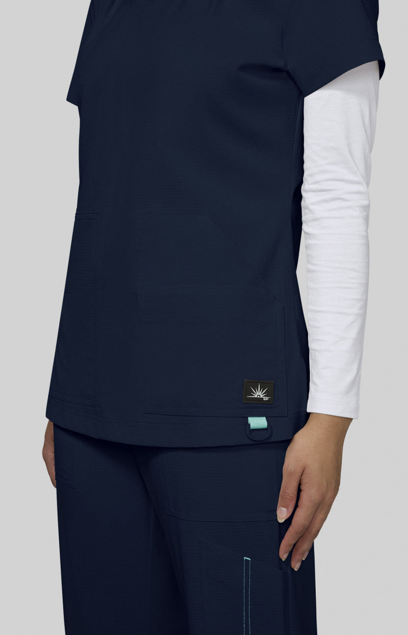 დახვეწილი, მოდური სამედიცინო ზედა, რომელიც დამზადებულია ჩვენი ულტრა გამძლე, მაგრამ აბრეშუმისებრ რბილი ExoFlex™ ripstop ელასტიკური ქსოვილისგან. თანამედროვე ჭრილი.